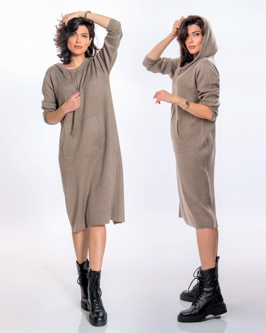 Knit Dress With Pocket And Hood Minimalist Style Hoodie Tunic Etsy